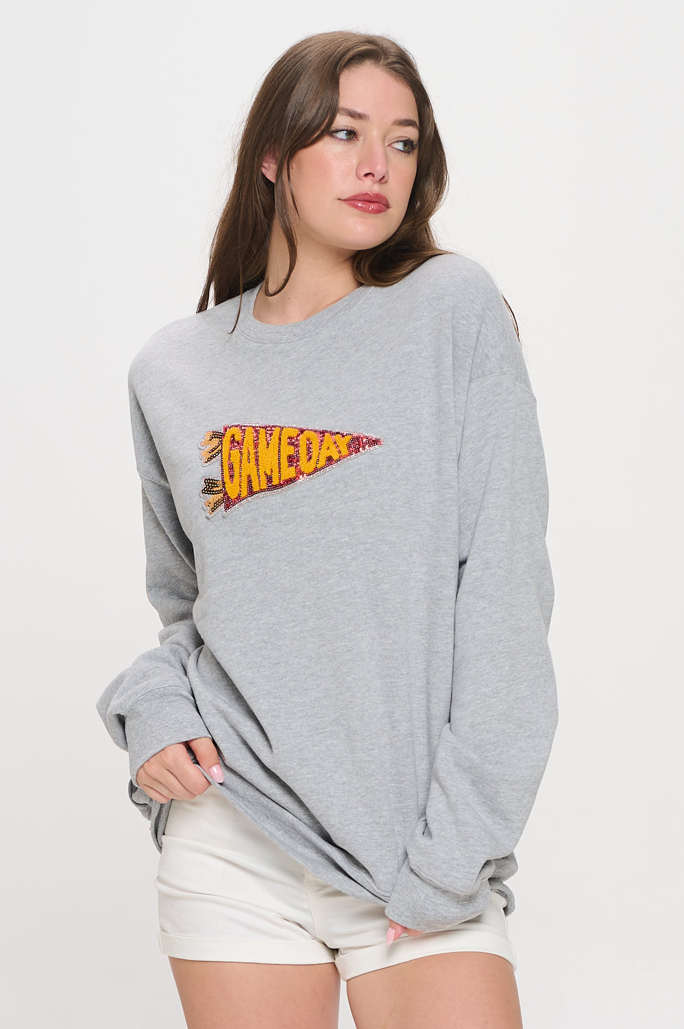 Our Sequin Pennant Sweatshirt has the perfect amount of sparkle for sports fans!