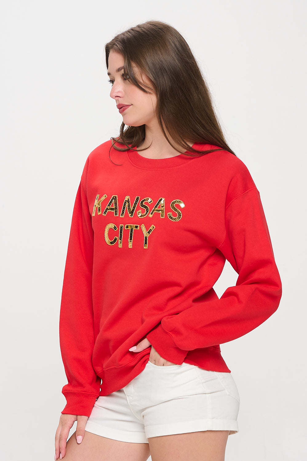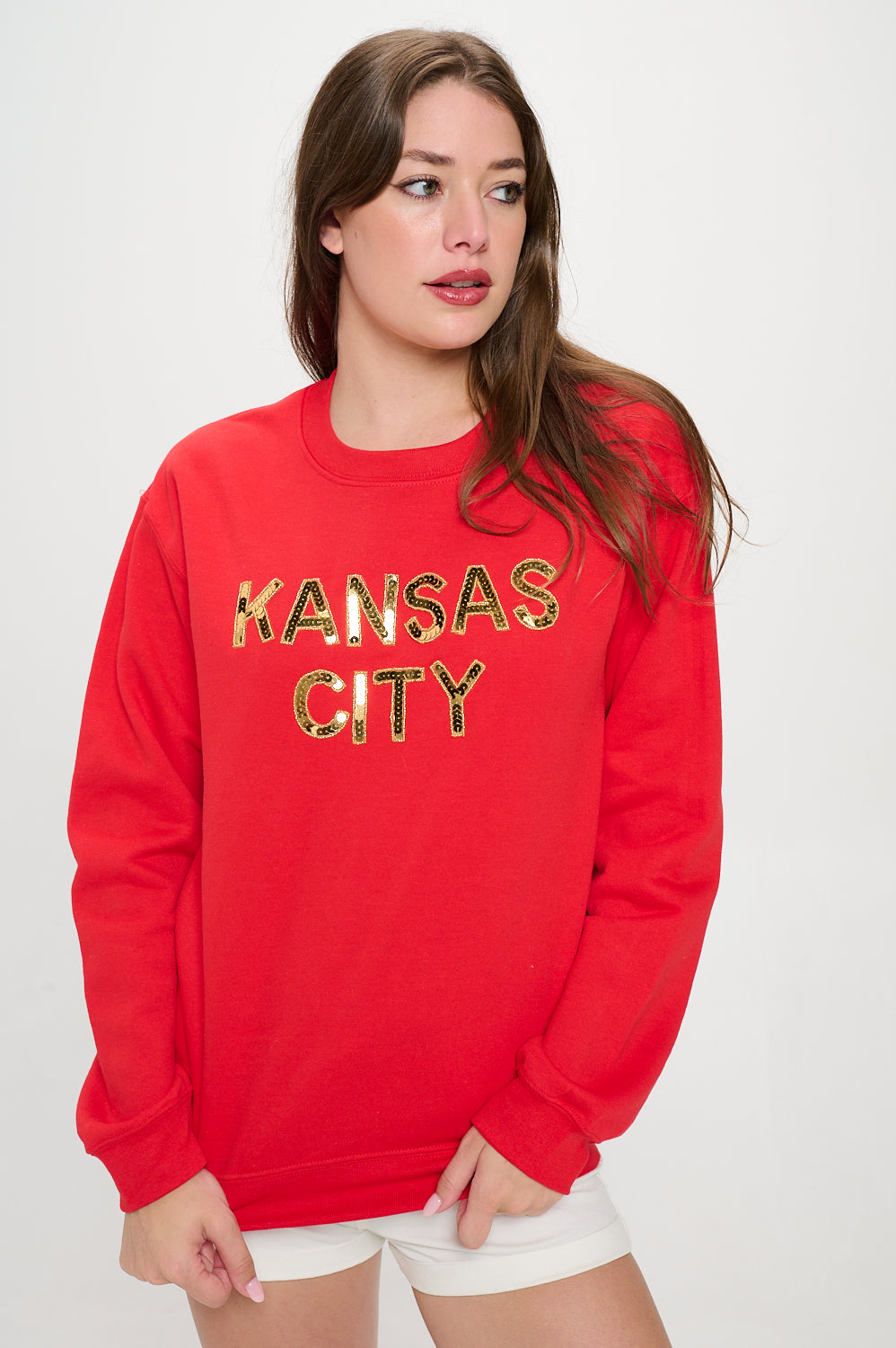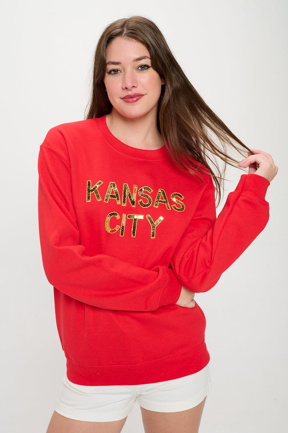 Our Red Kansas City Sequin Sweatshirt has the perfect amount of sparkle for Chiefs fans! The super soft fleece tri-blend fabric will give you a comfortable fit!